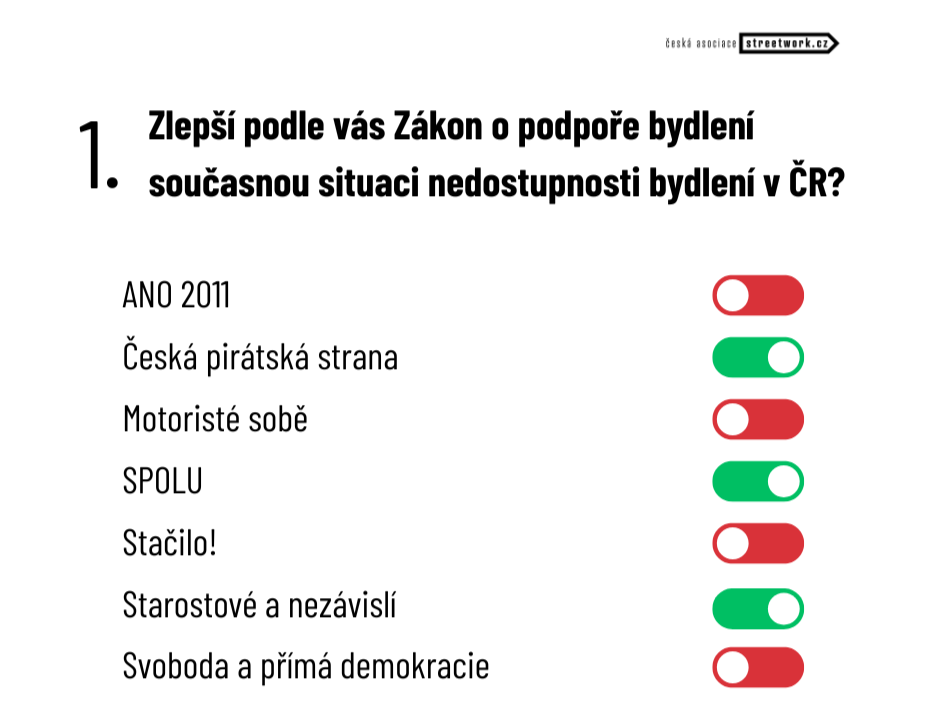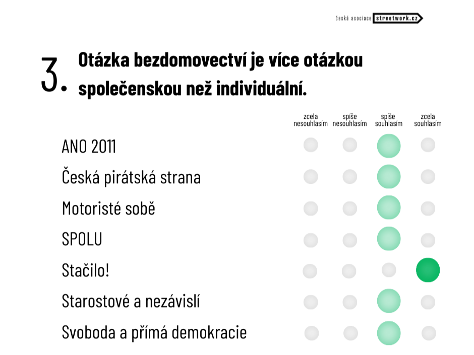 První část předvolební ankety České asociace streetwork představila téma Bydlení a lidé v situaci bez domova.