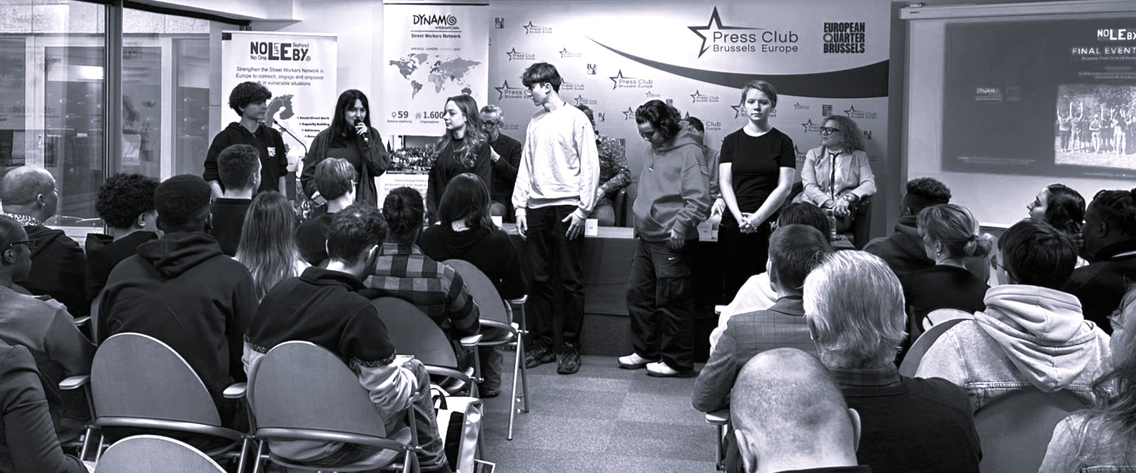 Mezinárodní výměna mládeže „Too Late to Ignore Us“, v rámci níž se mladí lidé z šesti zemí sjeli do Bruselu. Devítidenní program vyvrcholil prezentací doporučení k tématům bytové krize, diskriminace a socioekonomických nerovností. Aktivity byly součástí projektů NOLEBY (No One Left Behind) a Too Late to Ignore Us. Spolufinancováno z programu Evropské unie Erasmus+.